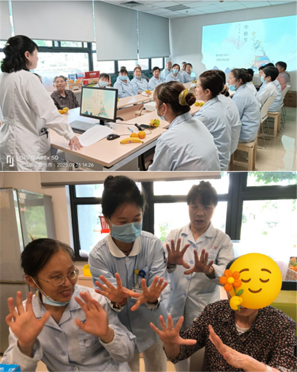 10月5日下午,中西醫(yī)結(jié)合(老年)康復(fù)科舉辦了“濃情迎中秋”主題活動(dòng)?;顒?dòng)在輕松愉快的氛圍中開始,患者和家屬們圍坐一圈,一邊聊天,一邊享用水果和零食。護(hù)士長壽月華為大家講解了中秋節(jié)的習(xí)俗與由來,并送上了誠摯的節(jié)日問候與祝福。隨后,壽月華向家屬和陪護(hù)人員強(qiáng)調(diào)了節(jié)日期間需注意消防安全,并提醒他們加強(qiáng)陪護(hù)工作,確?;颊甙踩?。最后,科室還為陪護(hù)人員開展了手衛(wèi)生規(guī)范培訓(xùn),指導(dǎo)大家加強(qiáng)手部清潔,做好患者的日常衛(wèi)生與個(gè)人防護(hù)。